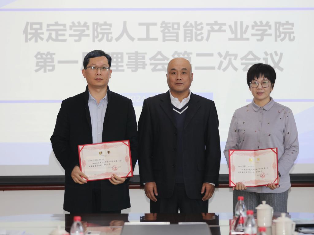 会议对36365线路检测中心人工智能产业学院理事会成员进行了增补。孙斌为新增选的副理事长董群、理事刘凤田颁发聘书。