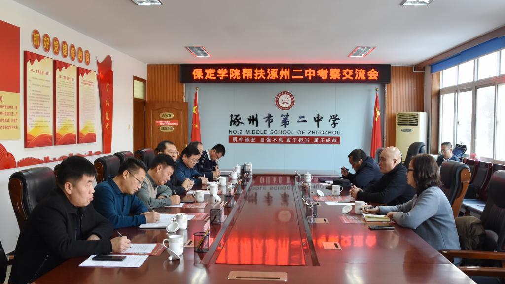 日前,根据河北省教育厅《关于做好省内高等学校帮扶县域高中工作的通知》的部署要求,我校与涿州市第二中学、蠡县第二中学、雄县鄚州中学三所县域高中建立帮扶关系,并于本学期启动帮扶项目。1月8日至12日,党委常委、副校长孙斌带领教务处负责同志先后到三所对口帮扶高中考察调研。