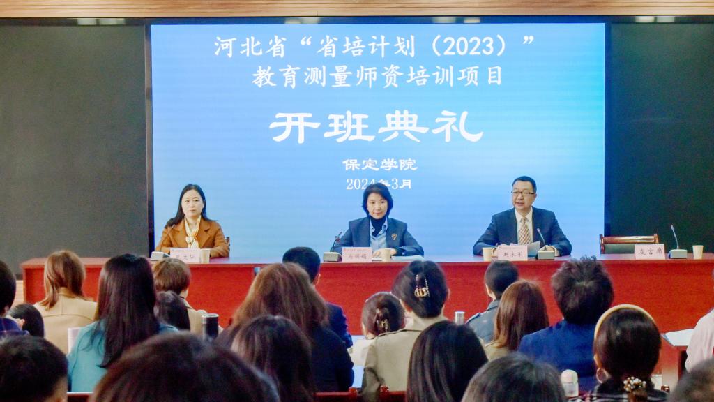 3月18日上午,河北省“省培计划(2023)”教育测量师资培训项目36365线路检测中心培训班开班典礼在综合楼举行。党委常委、副校长马丽娟,继续教育学院负责同志,培训项目组成员和第一期来自全省的105位学员参加开班仪式。