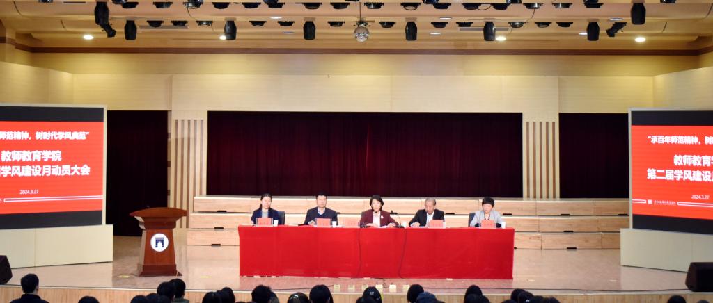 3月27日下午,教师教育学院在阎肃音乐厅召开第二届学风建设月动员大会,党委常委、副校长马丽娟,教师教育学院负责同志、各教研室主任、辅导员和学生代表参加会议。