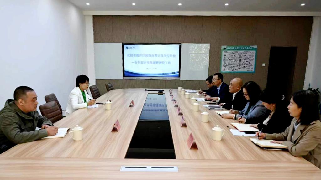 4月24日,河北省教育厅师范教育处处长郭冬梅、师范教育处一级主任科员潘华来我校调研指导师范类专业认证工作。