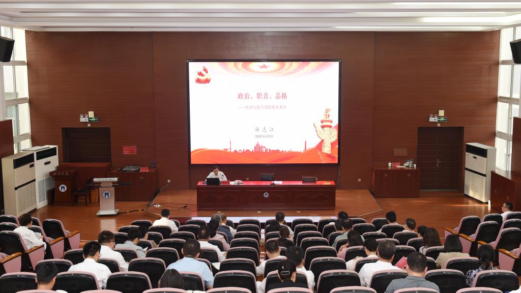 党委常委、纪委书记、监察专员汤志江以《政治、职责、品格——再谈纪检干部的基本素养》为题,从理论强基保持政治坚定、挺起腰杆勇担职责使命、坚守底线锻造过硬作风三个方面就纪检干部素质能力提升作专题辅导。