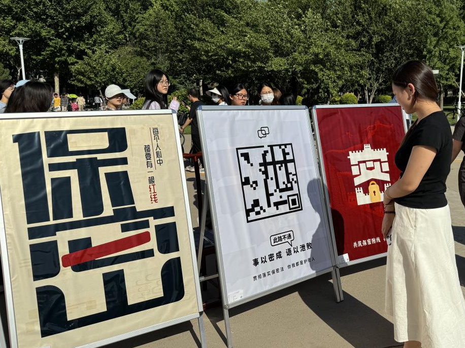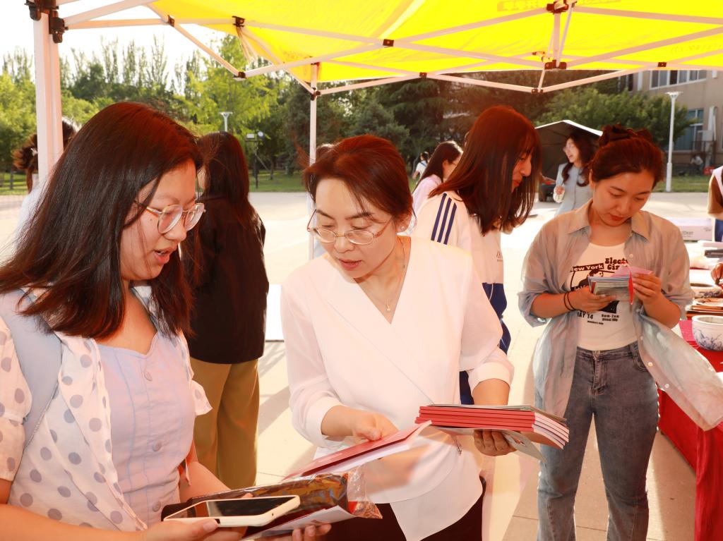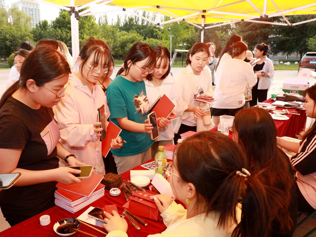 在宣传互动活动中,宣传组通过现场发放主题宣传资料、文创纪念品,创作主题书画作品、线上扫码答题等形式,就保密安全常识开展互动交流。师生积极参与,现场气氛热烈。