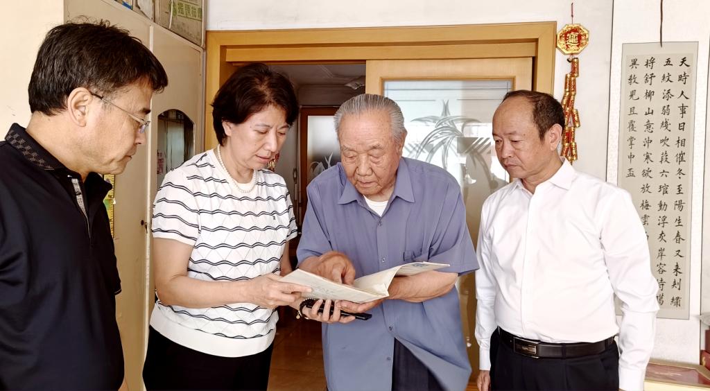 党委书记胡连利到董老家中看望,送上捐赠证书。胡连利首先代表学校党委感谢董老长期以来心系学校,为学校建设、校友联络及校史研究作出的重要贡献,他指出,董老这次捐书体现了老领导对学校发展的关心和厚爱,对广大师生是一种宝贵的激励。希望老领导保重身体,继续关心支持学校发展,深入挖掘校史资源,传承红色基因。董金义老校长充满深情地畅叙学校百年发展历史和杰出校友。他表示,今年是学校办学120周年,作为一名从保师毕业又长期在学校工作的老同志,愿意为学校发展再尽一份绵薄之力,祝福学校越办越好。