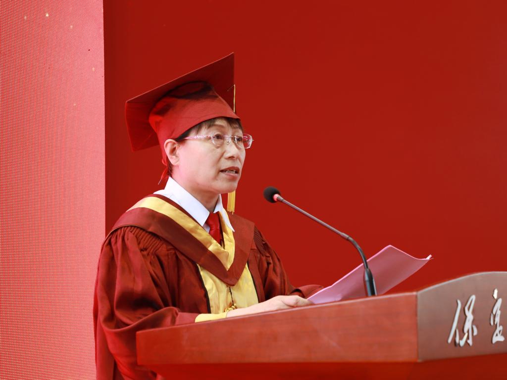 党委副书记、校长韩会玲代表全校教职员工向2024届毕业生致以热烈祝贺和诚挚祝福,向关心关注学校发展、支持学校工作的家长、校友和社会各界表示衷心感谢。她深情寄语2024届毕业生,要坚定理想信念,爱党报国担负使命。将个人的理想同祖国的发展紧密相连,把个人的奋斗与人民的需要紧密相连,在推进中国式现代化的生动实践中实现人生价值,让青春绽放出服务人民、奉献祖国的亮丽底色。要坚持学以立身,创新求变突破自我。始终葆有学习和思考的热情,不断探求新知、开拓眼界;始终葆有青年的勇气和朝气,不断更新观念、突破自我。要坚守人生定力,脚踏实地向阳生长。坚定“把每一项平凡工作做好就是不平凡”的恒心,坚持“把每一件小事情做好就是大事业”的匠心,脚踏实地、精益求精,全身心投入自己的角色、岗位。要坚信热情的力量,事不避难担责尽责。坚信热情的力量,担负责任的考验,才能穿越险峻的山谷、激流,实现真正的成长和蜕变。