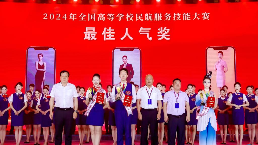 在第十四届全国高等学校民航服务技能大赛上,来自300余所高校85支代表队的2500余名学生展开了激烈角逐,我校航空服务艺术与管理专业学生以出色的表现荣获本科综合组团体综合季军,并在大赛开幕式上表演了精彩的节目。