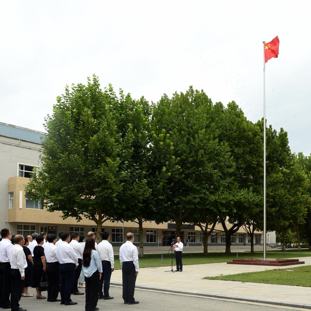 校领导刘清波、汤志江、马丽娟、孙斌、赵其国,全体中层干部,教师代表和国旗护卫队队员参加活动。
