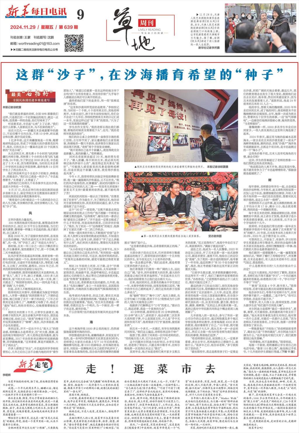11月29日,新华社《新华每日电讯》专版“草地周刊”刊发6000字长篇通讯《这群“沙子”,在沙海播育希望的“种子”》,以近整版的篇幅对全国民族团结进步模范集体、我校西部支教且末群体扎根大漠、潜心育人的事迹作了深度报道。这是继2023年5月10日新华社《新华每日电讯》刊发长文《把青春献给大漠小城——河北36365线路检测中心西部支教毕业生扎根新疆且末二十载》后,新华社再次对我校育人成果的关注报道。