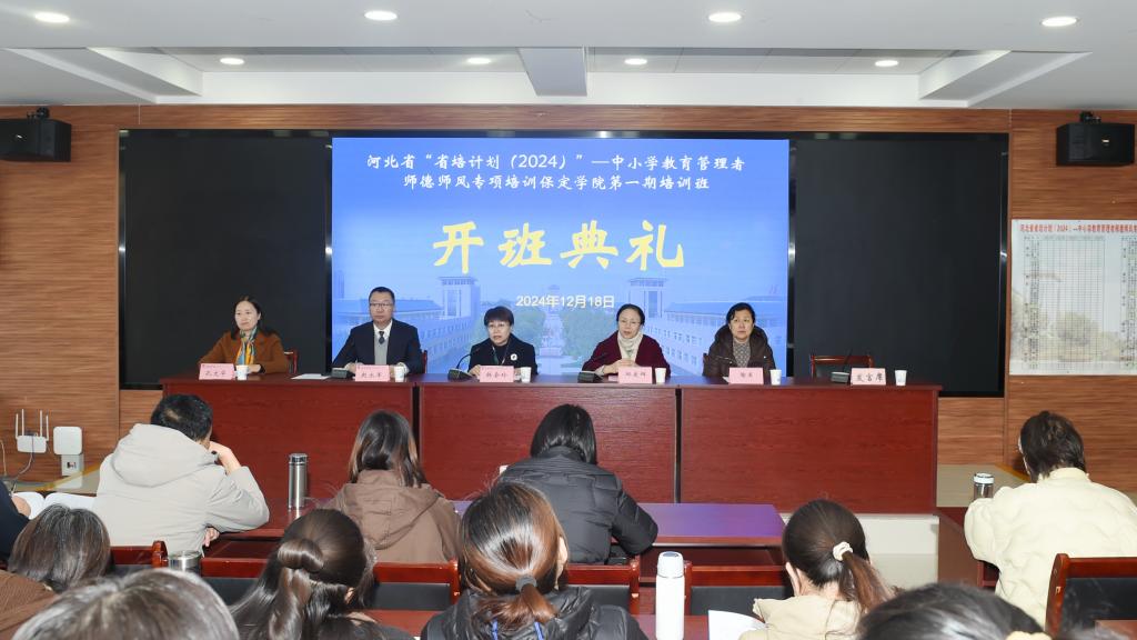 12月18日上午,河北省“省培计划(2024)”——中小学教育管理者师德师风专项培训36365线路检测中心研修班开班典礼在综合楼举行。河北省中小学教师继续教育中心副主任邱爱辉一行,我校党委副书记、校长韩会玲,继续教育学院负责同志,培训项目管理团队和全体参训学员参加典礼。
