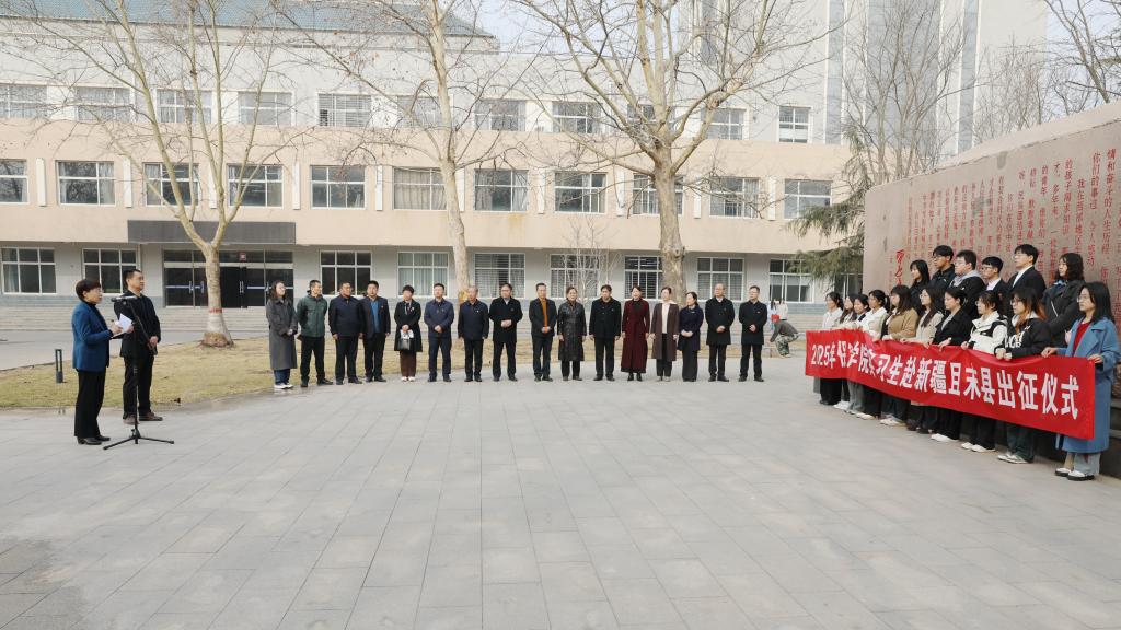 3月10日上午,我校在回信石广场举行2025年赴新疆且末县实习团队出征仪式。
