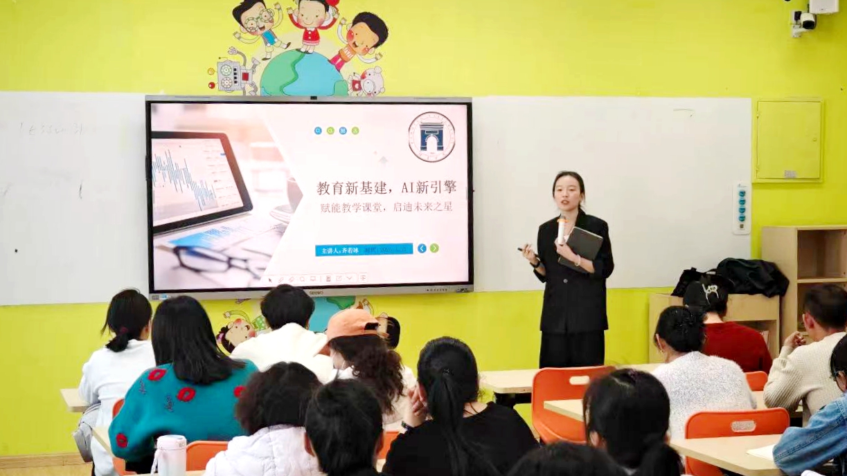 我校外语教育与国际商务学院教师齐若冰为各中小学英语教师举办了《教育新基建,AI新引擎:赋能教学课堂,启迪未来之星》专题讲座。她详细解读了教育新基建的核心要素与战略意义,并结合大量案例生动讲解了AI技术在备课、学情分析、课堂活动、学习反馈等教学各环节的应用和效果,还围绕传统教学手段与现代信息技术融合互促展开了热烈讨论。