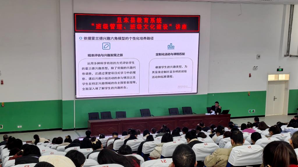 河北省先进德育工作者、我校生物化工与环境工程学院教师任跃辉在《基于多元理论的先进班集体管理智慧》的专题讲座中,深入浅出地介绍了将舒伯职业生涯彩虹图、霍兰德兴趣六角模型和MBTI性格理论有机融合应用于班级管理实践,打造更具活力、更有利于学生全面发展的先进班集体。强调了要多关注学生的性格特点、兴趣培养和生涯发展,为他们提供更广阔、更多元的成长舞台。