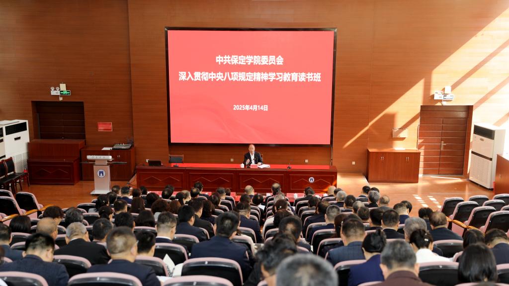 4月14日至15日,我校举办深入贯彻中央八项规定精神学习教育读书班,深入学习领会习近平总书记关于加强党的作风建设的重要论述和中央八项规定及其实施细则精神。党委书记胡连利讲授专题党课并作总结讲话。校领导韩会玲、刘清波、周林伟、汤志江、马丽娟、孙斌、赵其国、赵晓明和全体中层干部参加读书班学习。